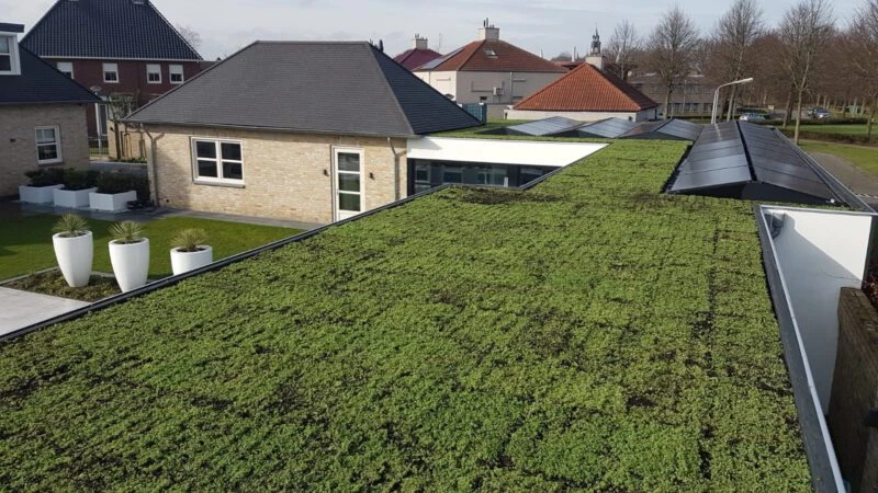 Die Gärtnerei Kok Hoveniers aus Ridderkerk hat die Covergreen® Sedum-Kassetten verwendet, um dieses schöne Projekt zu realisieren. Kok Hoveniers verfügt über jahrelange Erfahrung in der Bepflanzung ganz unterschiedlicher Dächer mit Sedum-Dachkassetten.
