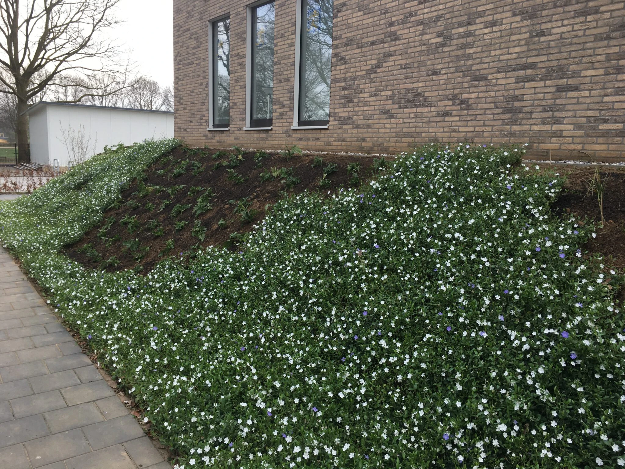 Un exemple de pentes où les couvre-sols sont régulièrement utilisés est les parois latérales d’un tunnel pour vélos. Dans ce cas, les deux côtés d’accès sont aménagés avec des couvre-sols pour créer un beau talus verdoyant qui mène dans le tunnel.