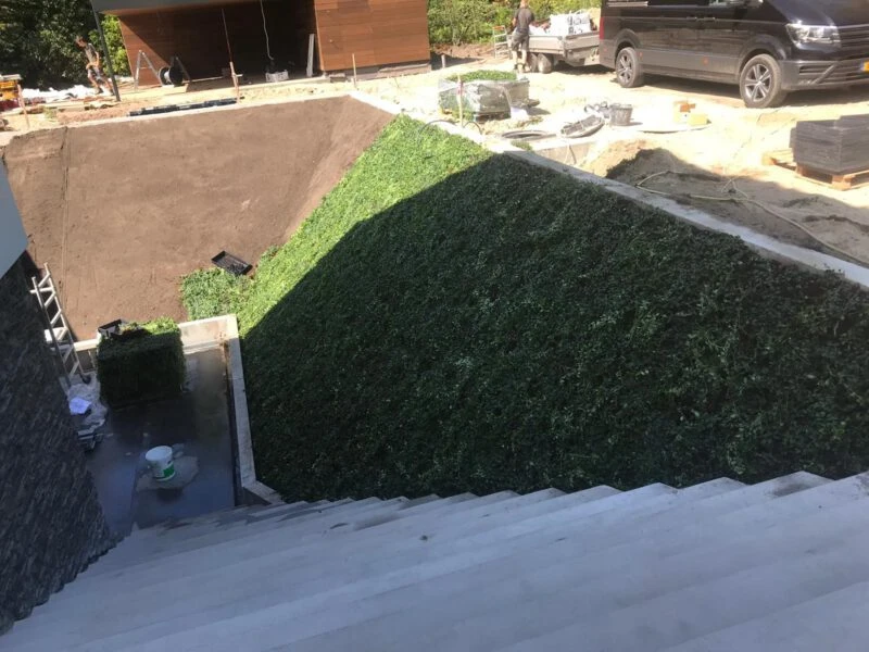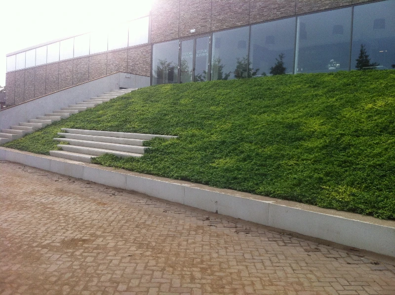 L’utilisation de nattes de plantes sur un talus ou une pente a plusieurs avantages : les nattes de plantes empêchent l’érosion du sol du talus. Comme dans toute autre situation avec les couvre-sols Covergreen®, vous avez également directement l’apparence souhaitée sur un talus. De plus, il est particulièrement utile d’équiper une pente d’une végétation nécessitant peu d’entretien, compte tenu de la difficulté d’entretien et d’accès sur une pente.