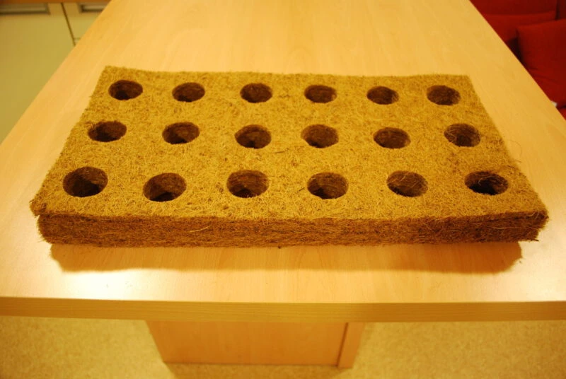 De drie studenten – Lisan Koes, Natasha Mook en Frits Smit – werd de mogelijkheid van een bak van kokosvezel aangereikt. Ze kregen uitgebreid te horen wat er met dit materiaal allemaal mogelijk is. Kokosvezel absorbeert heel erg goed en is tegelijkertijd vuilafstotend. Covergreen kweekt de kant-en-klare bodembedekkers op kokosmatten, dus het voordeel van kokosvezel is hier meer dan bekend.