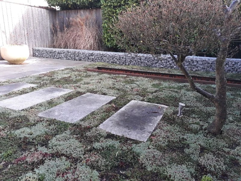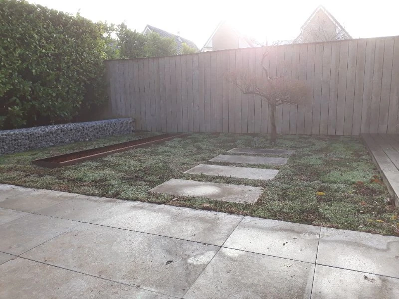 Een slechte afwatering en moeilijke (klei)ondergrond zorgden ervoor dat de bestaande Sedum in deze tuin slecht groeide en onkruid juist vrij baan kreeg. Daarom werd Van der Glas Hoveniers gevraagd om een oplossing.